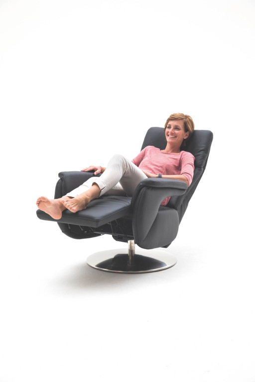 Leder Punch, Farbe anthrazit, ohne Kontrastnaht, Rücken echt, Vollschaum, Drehteller DT 1 Edelstahl, Sitzhöhe 47cm, Sitztiefe 53 cm, Sitzbreite 51 cm
