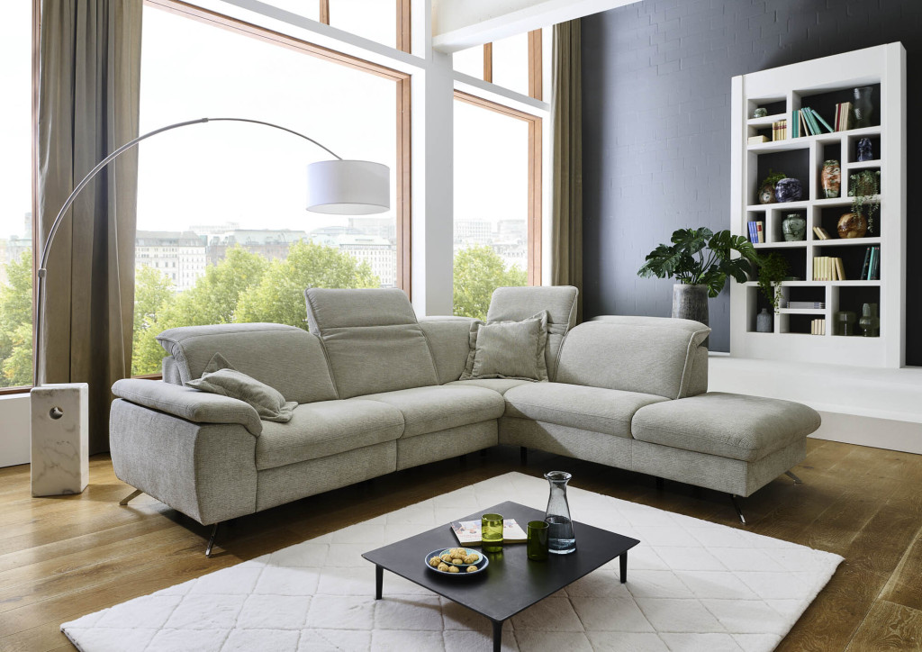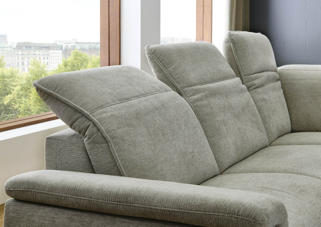 Kombielement gerade mit Hocker rechts, Kopfteilverstellung manuell inklusive, Rücken echt, BHT ca. 107/108/245 cm