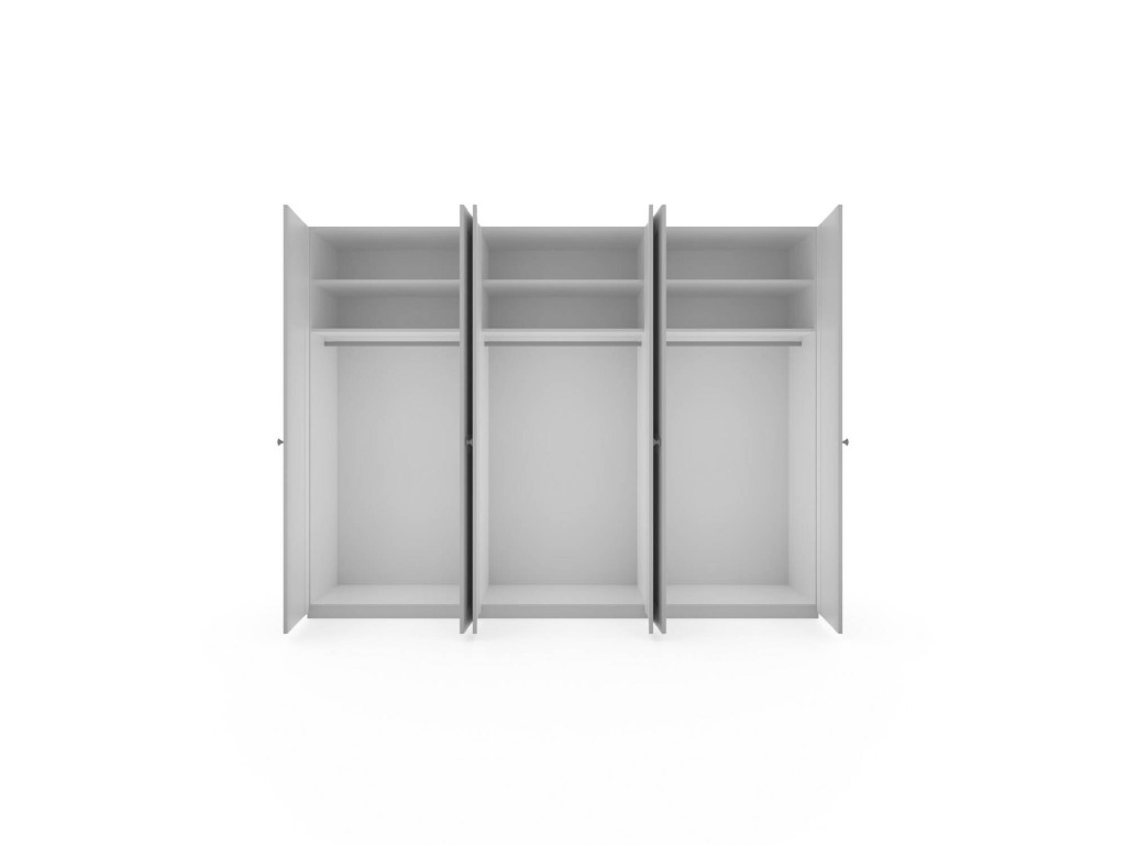 Korpus Lack weiss Echtholz furniert, Front Lack weiss Massivholz, Landhausgriff, 6-türig, Kassettentüren, BHT ca. 299,2/229,4/60 cm