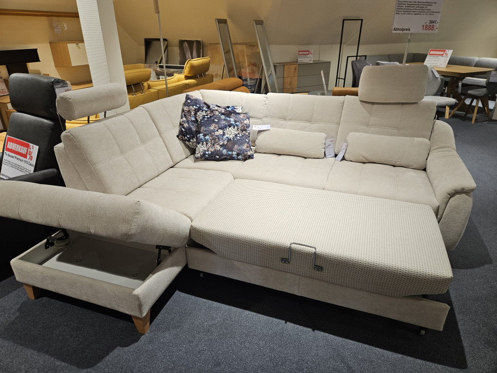ca. 221x242cm inklusive Funktionen aufklappbarer Hocker, Querschläfer Funktion, Kopfstütze 2x Nierenkissen