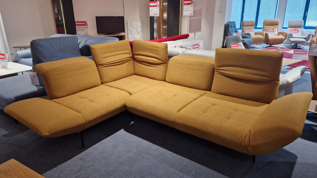 Bezug Portofino mustang, Rückenart: Metallbügel schwarz, Sitzoptik: gesteppt, Rückenoptik: glatt, Rücken echt, Fuß Metall schwarz matt, Sitzkomfort: Pur Schaum (Standard), mit Vorziehsitz motorische und Armteilverstellung, inkl. Kopfteilverstellung bei allen Elementen,