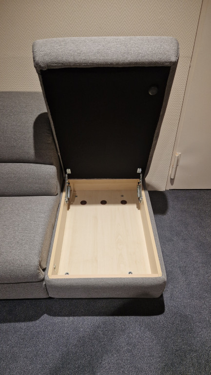 Kopfteilverstellung manuell im inneren Sitz, Trapezeckr, elektrische Relax-Funktion links, offenes Abschlusselement mit aufklappbarem Hocker,