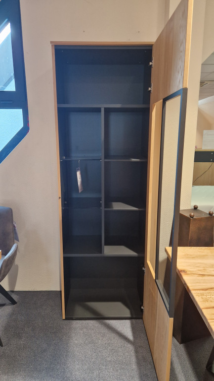 Balkeneiche natur / Lack seidenmatt anthrazit, Nr. Z11-1, 1Glastüre, 1 Regalbereich,ca. B/H/T 65/196,9/41,5 cm.