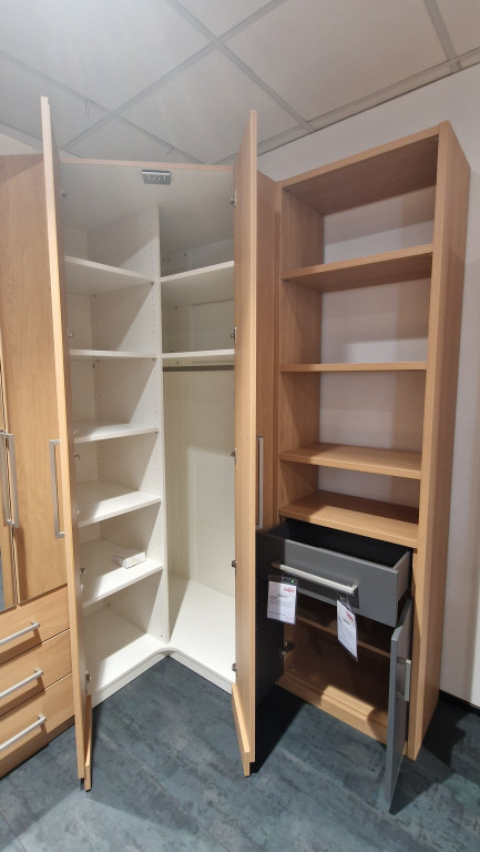 Drehtüren-Eckschrank: 2-trg., ca. H=224,6 Schenkelmaß links: 107,9 Schenkelmaß rechts: 107,9