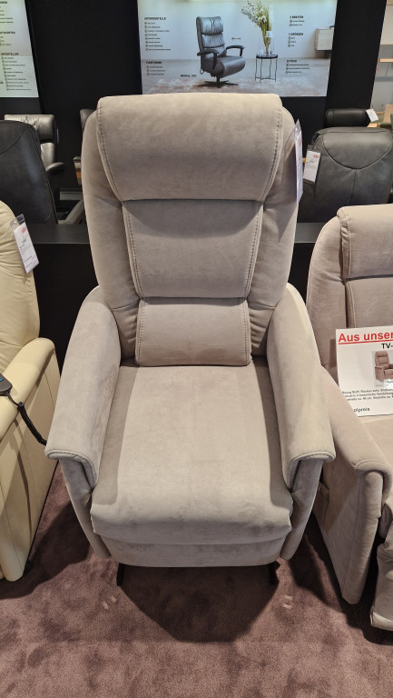 Bezug Kosmos schiefer, 2-motorig Aufstehhilfe, Fußteil elektr., Rücken elektr., Rücken echt, Sitz Superlastic med, mit Rollen, B/T/H ca. 69/85/110 cm.SB/SH/ST/GT 46/48/48/152