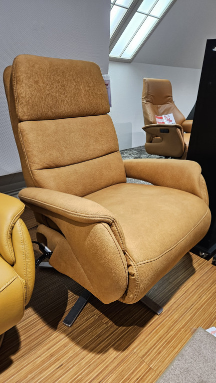 Rückenoptik: 2, Armlehnenoptik: AL 1, Zusatzfunktion: mitlaufendes Armteil, Rücken echt, Bezug Ares ocker 155, PG. C ,