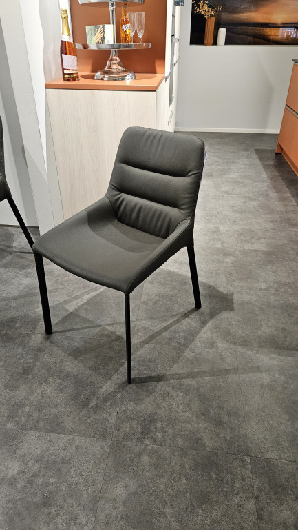 Nr. 3038473, Gestell schwarz, Bezug Kunstleder dunkelgrau 31528, geschlossene Rückenlehne, belastbar bis ca. 130 kg., ca. H=82 SH=47 B=50 SB=38 cm.