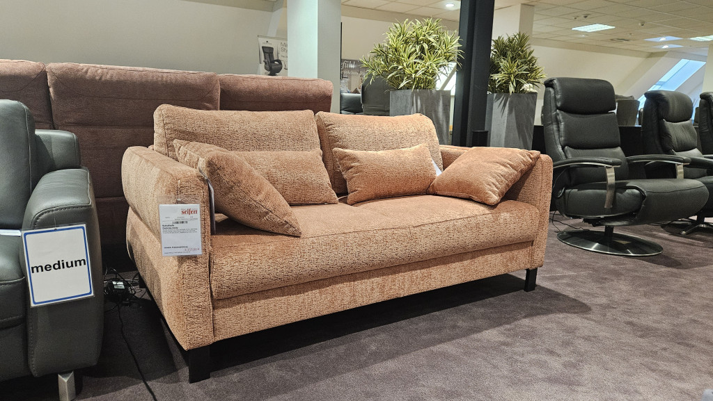 -DL145, Armlehne AL-Typ 1 fest Breite 12 cm., Füße Metall schwarz, Bezug 2-7042, Rücken echt, ca. B=174 H=89 T=104 SH=44 SB=150 cm., Liegefläche ca. 146 x 210 cm. Inkl. 2x Nierenkissen 2x Deko-Kissen