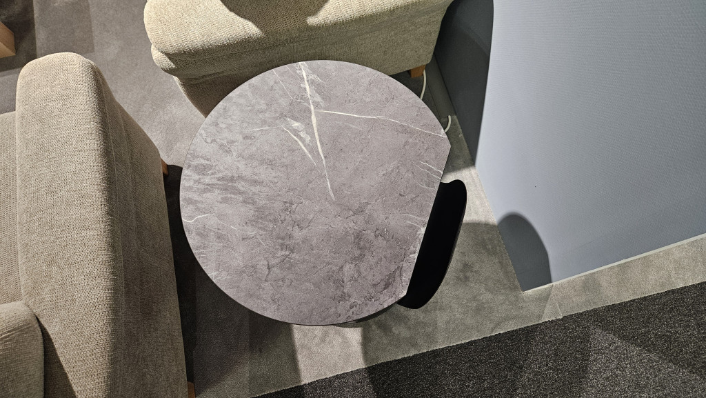 Platte: MDF mit HPL Auflage Marble Grigio mit Schweizer Kante klar lackiert,