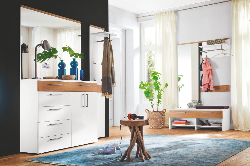 Korpus: 28 Wildeiche Bianco, Blatt: 28 Wildeiche Bianco, Front: 18 graubeige matt, BHT 120,6/43,5/35 cm