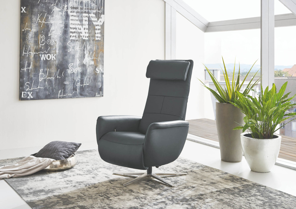Relaxsessel - Grundversion B - Verstellung der Beinauflage durch Körperdruck, stufenlose Verstellung der Rückenlehne durch Gasdruckfeder, individuelle Kopfpolsterverstellung (manuell), BHT ca. 78/88-117/82-183 cm