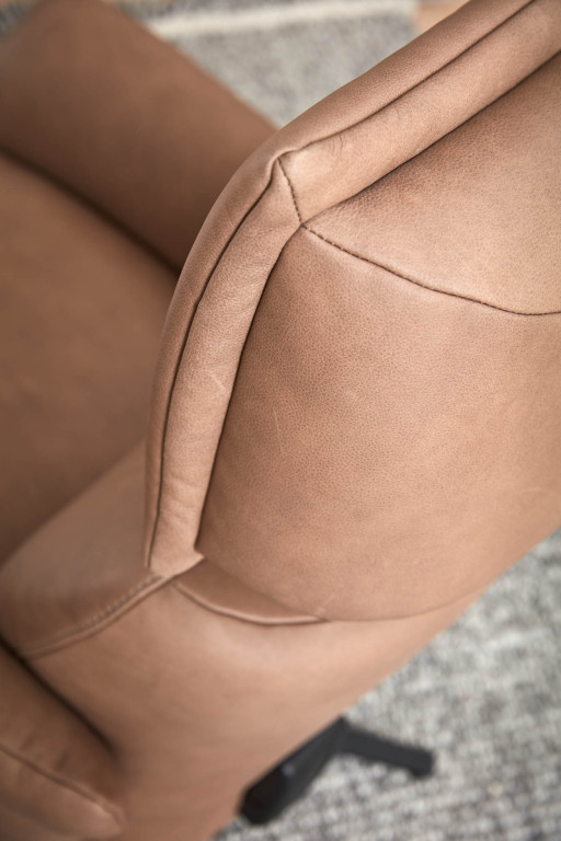 Leder 18 LL, Farbe canyon, Rücken echtbezogen, Sitz Superlastic soft, Metallsternfuß anthrazit pulverbeschichtet, Sitzhöhe 46 cm, Sitztiefe 54 cm, Sitzbreite 47 cm