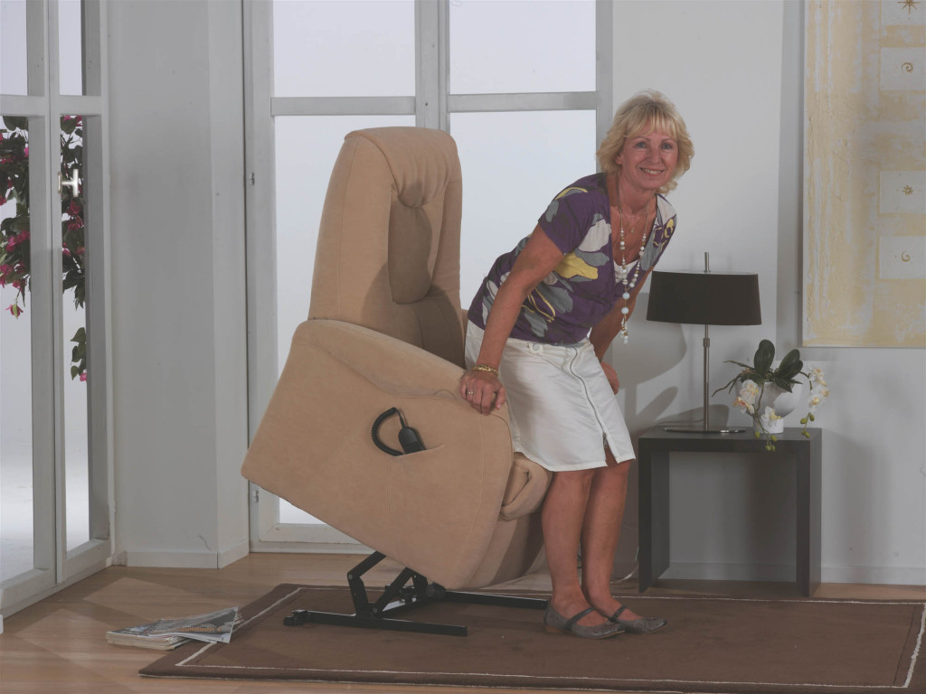 Stoff 18 Nuvano, Farbe Sand, Rücken echt, Sitz Superlastic soft, Rollen, Sitzhöhe 43 cm, Sitztiefe 53 cm 26G - Relax-Sessel, Aufstehhilfe, 1-motorig, Fußteil elektrisch, Rücken elektrisch, BTH ca. 80/88-167/107 cm