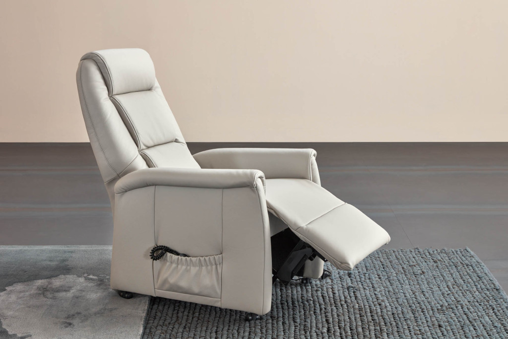 Leder 18 Torro, Farbe Porzellan, Rücken echt, Sitz Superlastic soft, Rollen, Sitzhöhe 41 cm, Sitztiefe 47 cm 25G - Relax-Sessel, Aufstehhilfe, 1-motorig, Fußteil elektrisch, Rücken elektrisch, BTH ca. 69/82-150/105 cm