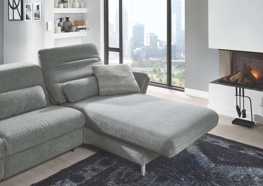 Canape gerade mit Kopfpolsterverstellung und motorischer Verstellbarkeit, Liegearmlehne rechts, Rücken echt, BHT ca. 109/82/181-217 cm
