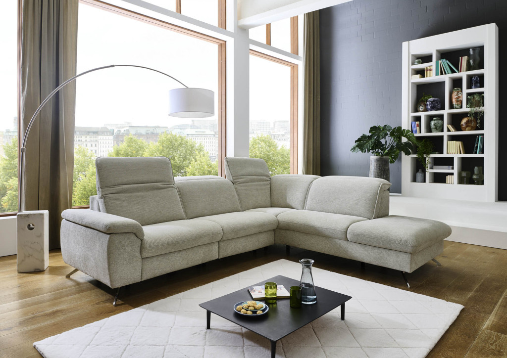 Kombielement gerade mit Hocker rechts, Kopfteilverstellung manuell inklusive, Rücken echt, BHT ca. 107/108/245 cm
