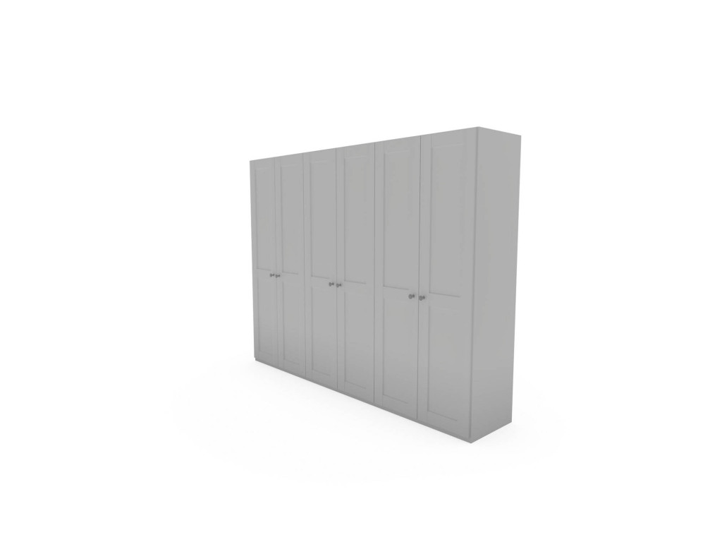 Korpus Lack weiss Echtholz furniert, Front Lack weiss Massivholz, Landhausgriff, 6-türig, Kassettentüren, BHT ca. 299,2/229,4/60 cm