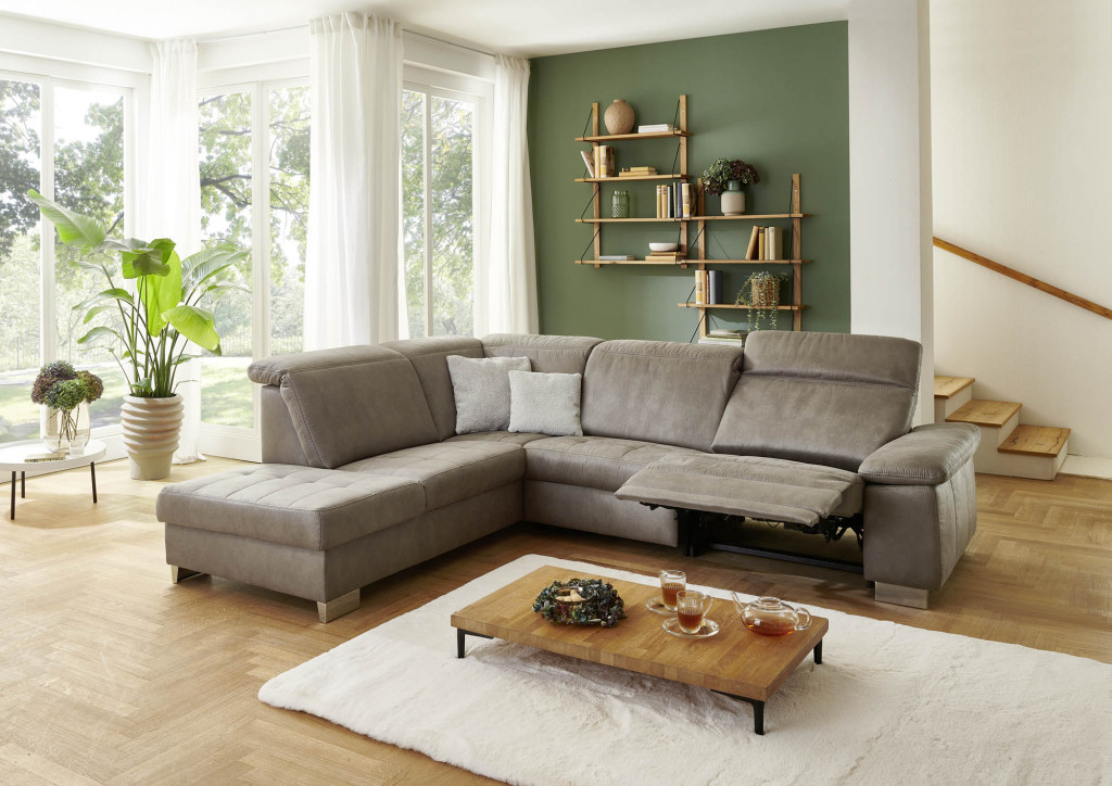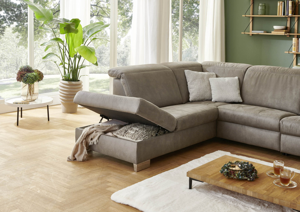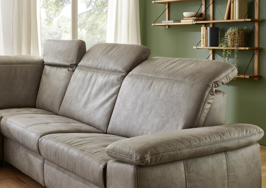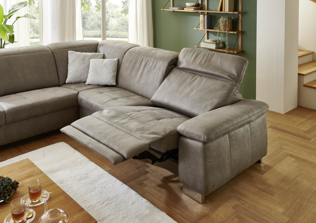 Abschlusshocker links mit 1,5-Sitzer, Kopfteilverstellung, Aufklappfunktion, BHT ca. 143/89-109/105 cm,