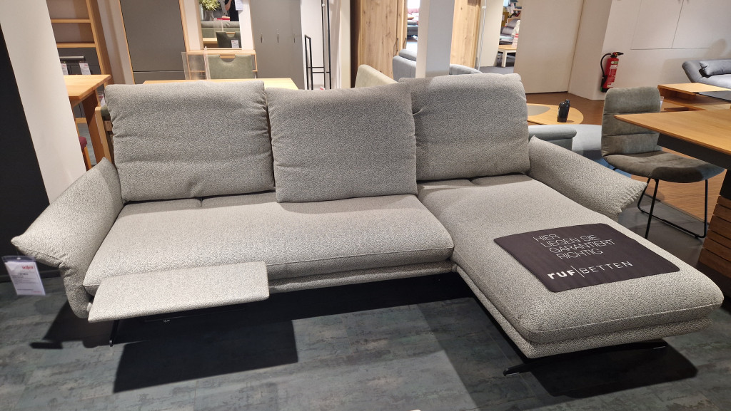 Bezug silver grey, Metallkufe, Farbe schwarz, Inklusive Sitztiefenverstellung, Kopfstützen- und Seitenteilverstellung, Motorische Relaxfunktion gratis!ca. 281 x 165 cm., SH=41 cm.