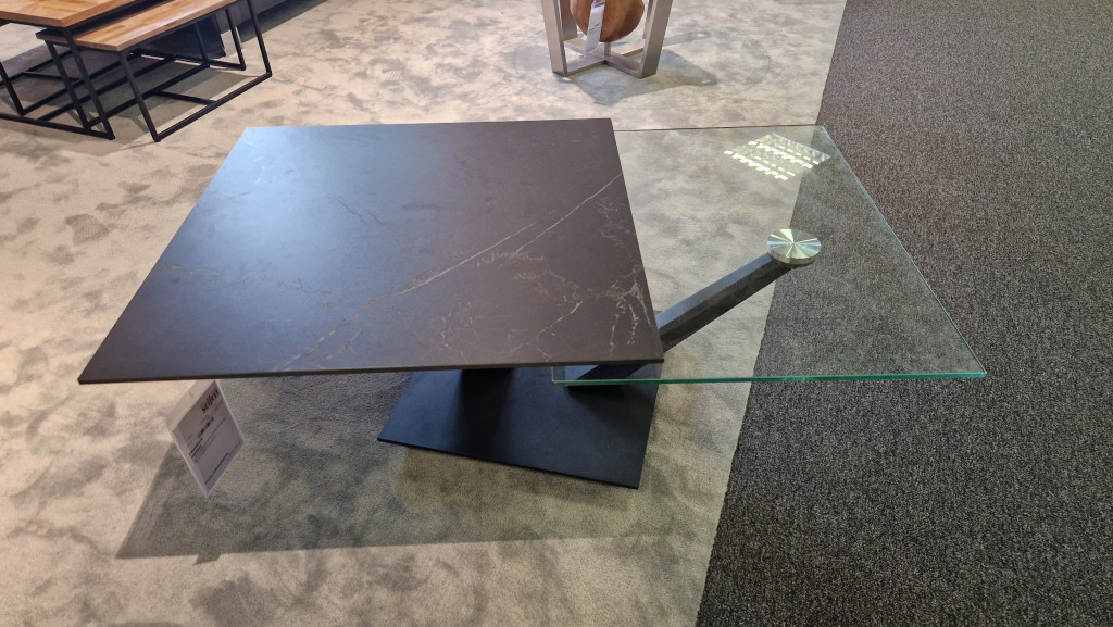 Keramik Marmoroptik Marquina matt, Stahl schwarz lackiert,Maße: B/T/H ca. 80-127/80/40 cm.
