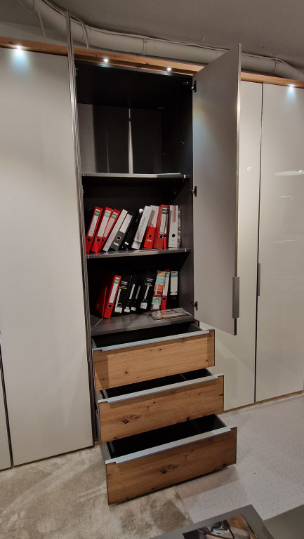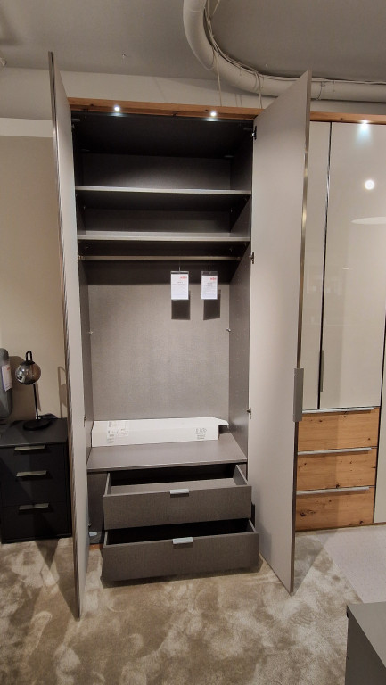 Planungsschrank 2-türig H/B/T 240x100x62 cm, 2x Aufpreis Tüfarbe, Planungsschrank 2-türig, 3 Schubkästen, Nr. 7208423, H/B/T 240x80x62 cm, 2x Aufpreis Türfarbe, Planungsschrank 2-türig, H/B/T 240x100x62 cm, 2x Aufpreis Türfarbe, Rechte Abschlußseite,H/B/T 240x1,5x60 cm, Inklusive: Profilkranz, 6 Beleuchtungen im Profilkranz , Fernbedienung, ,LED-Innenbeleuchtung Sensorschaltung,