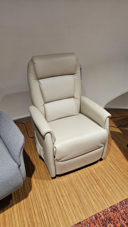 -28 Y42, Leder Torro porzellan, Gr. 71, Aufstehhilfe, 2-motorisch, Sitzhöhe ca. 48 cm., Rücken echt, Sitz Superlastic Med, mit Rollen, B/T/H ca. 74 x 85 x 110 xm., SB=51 ST=48 cm.
