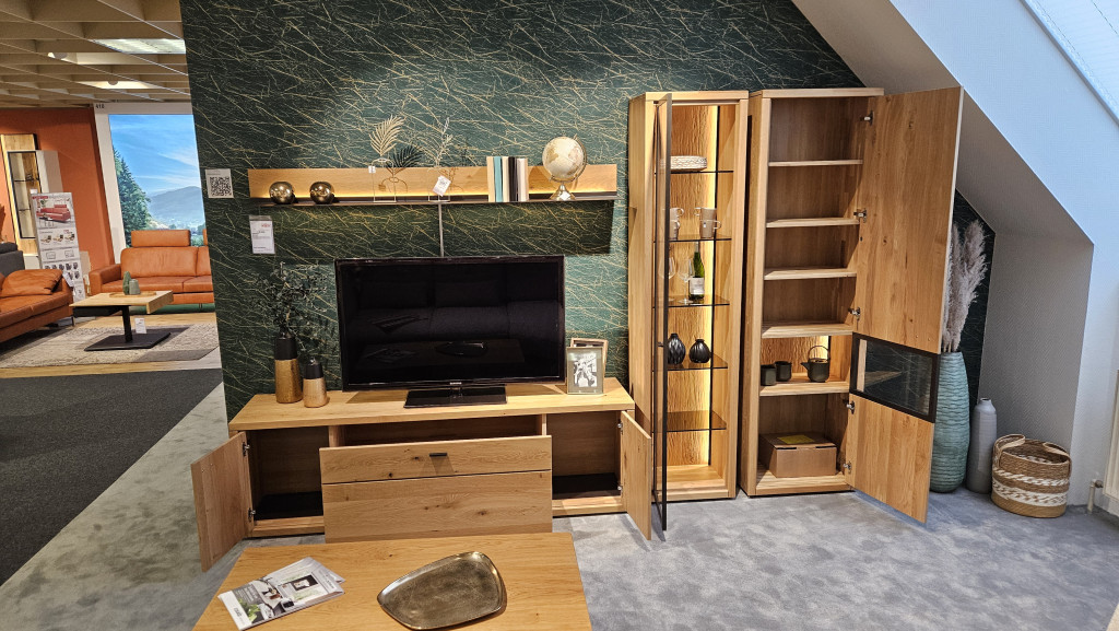 Deutsche Qualitätsarbeit, Ausführung: Wildeiche massiv soft gebürstet, Rückwand-Akzent: Spalteiche,