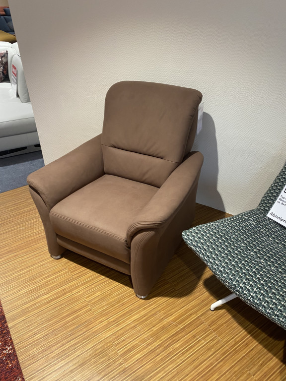 Bezug: Feeling brown (PG 12), Füße: Z005 Metall alu gebürstet, Sitz Federkern, Doppelsteppnaht ohne Kontrastfaden, Rücken echt, Maße: B/H/T ca. 90x96x93 cm, SH=46cm, SH=53cm, Stoff: 100% Polyester.