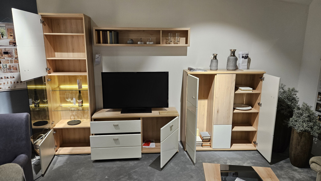 Deutsche Markenqualität, DEKOR-KORPUS: NATURBUCHE, DEKOR-FRONT: WEISS HOCHGLANZ ABSETZUNG: NATURBUCHE,