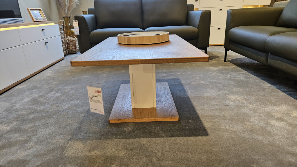 Soft white lackiert, Ast/Balkaneiche furniert in Wildeiche geölt, Sichtbare Hirnholzblöcke: Ast/Balkaneiche massiv in Wildeiche geölt,Bodenplatte: Eiche furniert in Wildeiche geölt, Maße: B/H/T ca. 110/45/65 cm